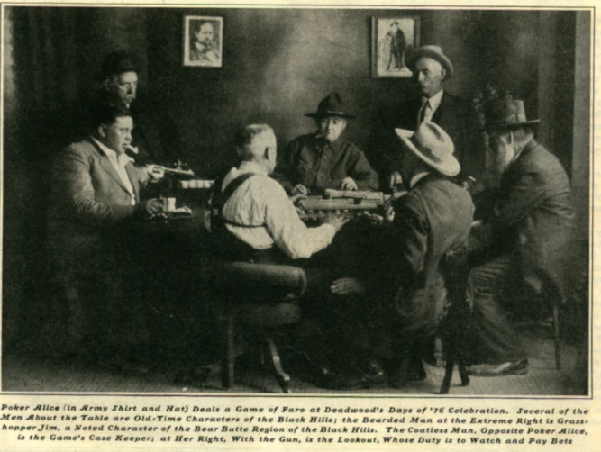 By 1912, Alice was living near Sturgis, South Dakota. Deadwood was no longer very welcoming to Old West characters, and she no longer spent much time there. Alice had just enough money to buy a small house that was to become her business. It was a bar and gambling house with a number of female employees. She was certainly not living in luxury, but she was getting by, which was difficult in those days for an older widow.