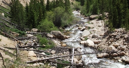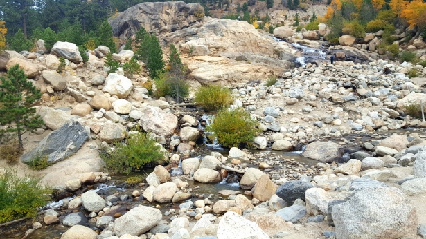 Shortly after 6 a.m. on July 15, 1982, the Lawn Lake Dam underwent a catastrophic failure, and for a brief period the Roaring River let the world know how it got its name. 30 million cubic feet of water tore through the landscape, ripping trees out by their roots, and sweeping tons of boulders and other debris along in its passing. Upon reaching the mouth of the valley at Horseshoe Park, where the torrent was able to spread out and slow for a bit, it left an alluvial fan covering over 40 acres.
