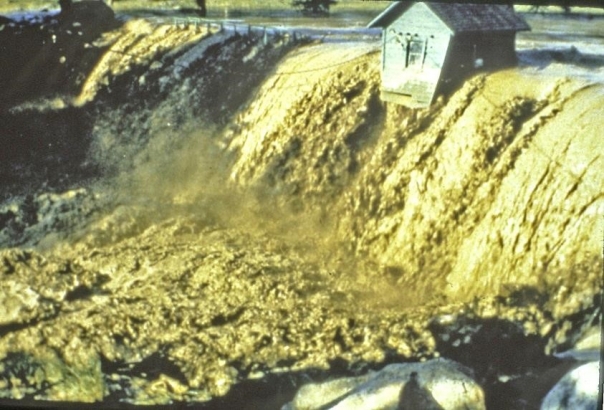 Was there that day, camping in the backwoods about 6 miles up from the public campground. The sound woke the three of us up - hangovers instantly gone. As it got closer the sound was deafening - you couldn't hear yourself scream if you wanted to. In the twilight the site was surreal as mature pine trees were bobbing through the air on what we quickly determined was a massive wall of muddy water. Water spray and splashes on our site sent us scurrying for higher ground. After its main pass, we spent hours watching tons of earth and 100' trees fall into the newly formed canyon edges. The canyon had to be a football field across with shear drop edges. We had a transistor radio but couldn't find any reports on what was happening. A few hours later a rescue group found us on the other side of the canyon and with their body gestures we figured out they wanted us to stay there! A couple more hours passed, the rescue group reached us, gathered us, and then scrambled us to an open site where helicopters transported us and our gear to the ranger station for interviews. Once in the air, the devastation was evident, especially over the public campground. Initially we were thinking of setting up tents closer to the 'creek' but decided to set a can of peaches in the water and camp higher up at the designated camping spot. It was a wise decision, we would have been goners like our can of peaches. As it was, our tents ended up to be about 20' from the newly formed canyon edge. Afterwards we were put up at a commercial campground outside the park. There were 7 or 8 other guys that were also 'rescued' from our area who were put up at the campground. Turns out all of us were from IL. Hopefully not bad juju. It was an unforgettable and solemn experience for three novice backpackers from Chicago.