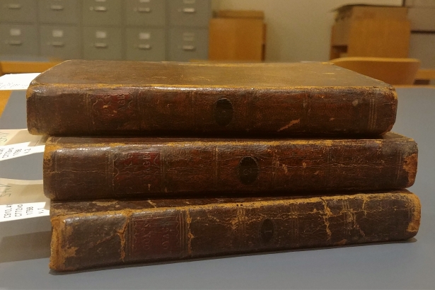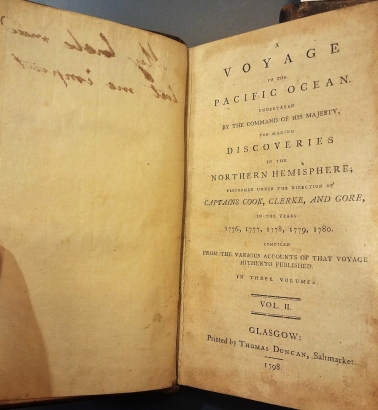 In February 2018, Ann McDermott of the British Library contacted us regarding a three-volume set in our vault, Voyage to the Pacific Ocean by James Cook. The full title is A voyage to the Pacific Ocean : undertaken by the command of His Majesty, for making discoveries in the Northern Hemisphere; performed under the direction of Captains Cook, Clerke, and Gore, in the years, 1776, 1777, 1778, 1779, 1780; compiled from the various accounts of that voyage hitherto published; in three volumes, but for the sake of efficiency we'll just call it Voyage to the Pacific Ocean. They were interested in adding this to the English Short Title Catalogue, a vast inventory of every surviving copy of letterpress publications produced in Great Britain and its former colonies, in any language, worldwide, before 1801. The reason Ann was contacting us was that we hold the only known copy of this printing in the world.