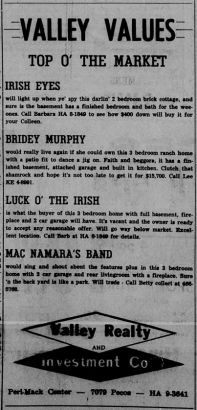 The subject of Bernstein’s attention (and source of his notoriety) was Pueblo native Virginia Tighe, though she was referred to as “Ruth Mills Simmons” to protect her privacy (at her request). Under hypnosis, Tighe told of her past life as a woman named Bridey Murphy, born on December 20, 1798, in the town of Cork, Ireland. The tale was slowly drawn out over a series of sessions and revealed remarkable details (many startlingly accurate). Among the specifics she mentioned were her husband’s name and profession, the name of the church in which they were wed and even how she had died falling down a flight of stairs. She even recounted attending her own funeral! Another remarkable detail was that as she told this life story under hypnosis, she spoke with a thick Irish brogue, a characteristic completely lacking in her ‘waking’ tone. All things considered, it’s not hard to see why the story seemed so believable on its face, nor why it would capture the imagination of the country.