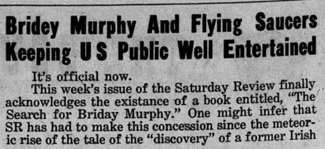 Unfortunately, Bernstein, anxious to share his amazing discovery with the world, wrote his book The Search for Bridey Murphy without doing much in the way of due diligence. While the astonishing “true story” captivated the cultural attention, there were many who were skeptical and unwilling to take the tale at face value. Once people actually started investigating Tighe’s claims, much of the tale began to unravel.
