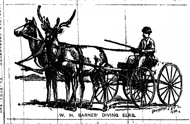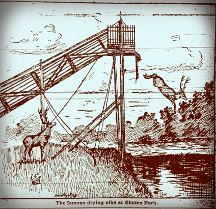 In May 1899, one of the "spectacular things" at Chutes Park was W. H. Barnes' team of diving elk. On May 28, the Rocky Mountain News described the opening day performance: