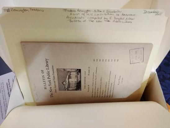 The Western History Department holds multiple artworks created by Remington, publications that include his illustrations, and the Frederic S. Remington papers. Of particular note in Remington’s papers are four boxes of letters from Remington to publishers, friends and literary figures covering the period 1890-1906. See the gallery below for some examples of these letters, as well as examples of his published illustrations.