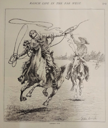 Remington’s action art eventually led to his employment with publications like Harper’s Weekly, Outing magazine, and a commission to produce 83 illustrations for Theodore Roosevelt’s “Ranch Life and the Hunting Trail,” which was serialized in The Century Magazine.