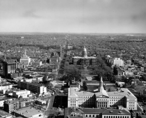 For example, Auraria's streets were aligned with Cherry Creek, while Denver's streets lined up with the Platte, even though both towns based their layouts on a north/south grid. (It's also worth noting that both bodies of water take very different paths through Denver today than they did in 1859.) But neither Denver nor Auraria's grids conformed to what the federal government wanted from new territories: a more formal east/west style—which is what developers like Henry Brown introduced when they laid out areas such as Capitol Hill.