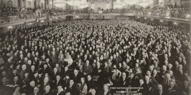 Panoramic photos also tend to illuminate an unfortunate aspect of life in the United States, and that is rampant segregation, as the following 1935 photo of the Townsend Plan convention indicates in a fairly stark manner.