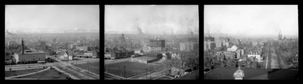 For example, the image at the top of this page is the middle piece of a three-piece panoramic image of Denver, taken by L.C. McClure in the late 19th or early 20th Century. The complete picture is shown below.