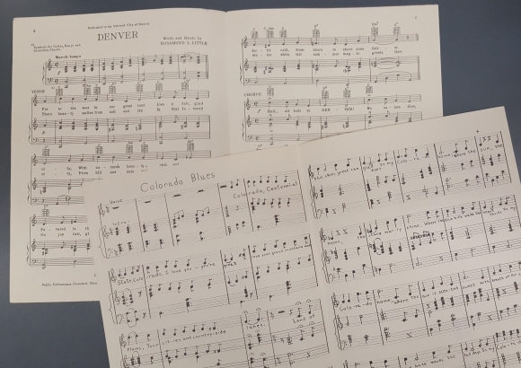 Case in point: I was recently helping Archivist Keli Schmid track down some WWII German map cases for the amazing Maps and War exhibit currently on display in the Western History and Genealogy Department. During our search, she stumbled upon sheet music titled Denver and Colorado Blues, both by Rosamund L. Little.