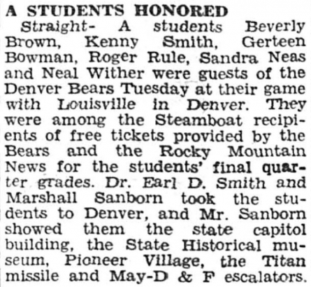 Delving back into the catalog, I found quite a few relevant entries and was able to determine that the rocket was unveiled on March 14, 1959. Oddly, though, there was little mention of the missile, other than a couple of grainy newspaper photographs and one article from the Steamboat Pilot, which apparently ranked the missile as only slightly more interesting than the May D&F escalators.