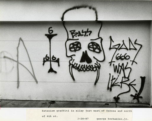 Things in Colorado did not bode any better once law enforcement started sniffing for Satanists under every rock. In 1987, a Washington postal inspector was looking into allegations that juvenile runaways were being recruited in Denver for, specifically, Satanic pornography. That same year, Denver Police Department’s freshly minted Occult Crimes Unit uncovered a “Satanic gang” of 12 to 15 people who were suspected of minor burglaries and graffiti that depicted upside-down crosses, skulls, and the number 666. Sadly, the March 15, 1987 issue of the Rocky Mountain News announced that reporters were unable to find and interview any of these mysterious mischief-makers. The next day’s edition of the News quoted self-described experts on Satanic crime,