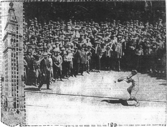 At the time, the D&F Tower was the tallest spot in Denver, and for hundreds of miles in any direction, so the event drew a crowd of thousands to Denver's Downtown to see if Parker could handle a big drop. And to make sure the ball was dropped by someone who knew what he was doing, Bears pitcher Herb Hall was given the honor of actually dropping the ball.