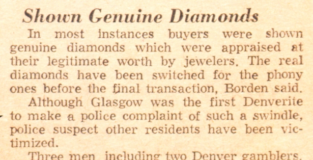 Yesterday's News Vol. III - The Great Diamond Swindle (and a much lesser diamond swindle)